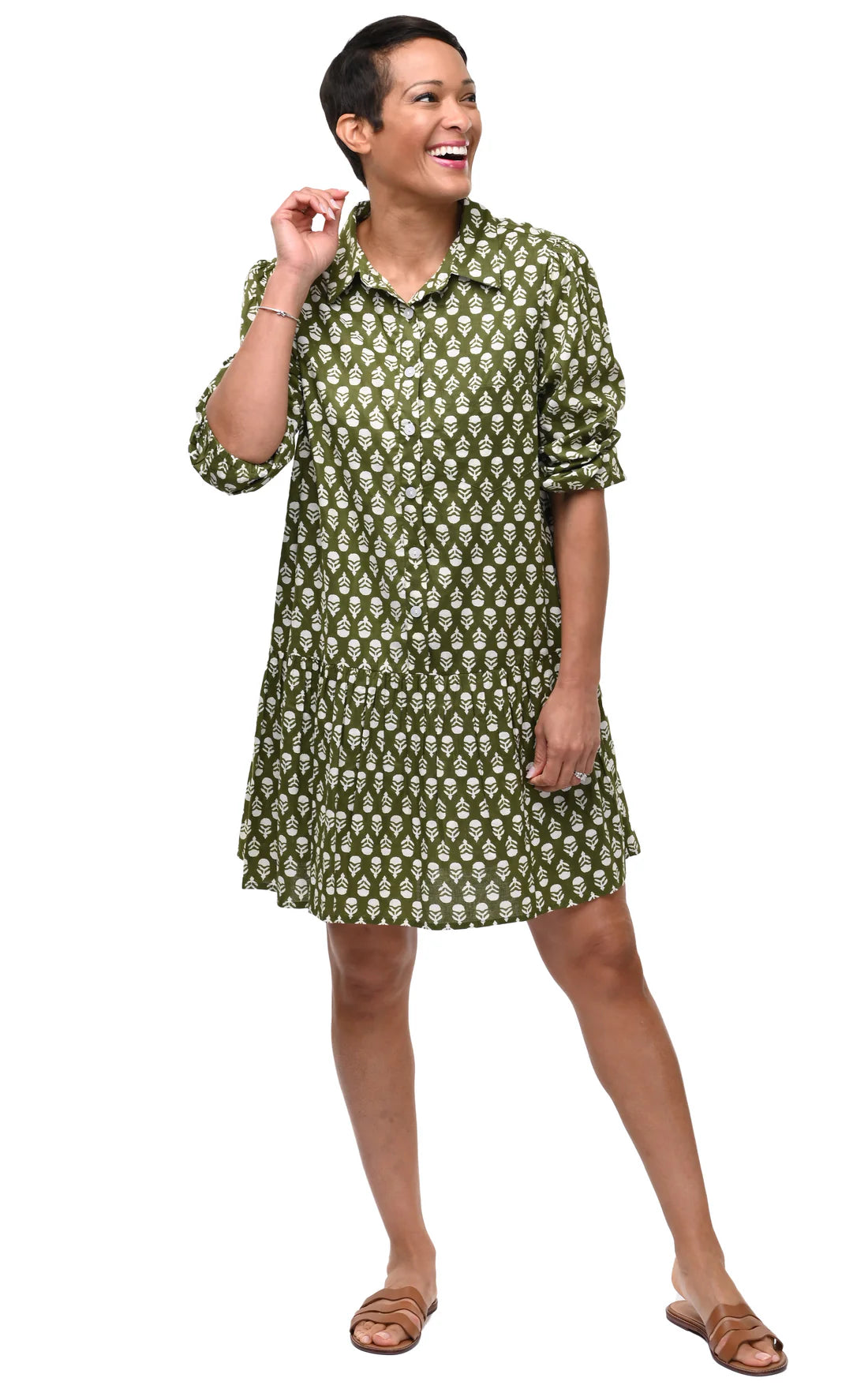 The Arbor Dress by Tulip Clothing blends sophistication and playful detail in a chic, knee-length silhouette. Crafted from high-quality textured cotton, this dress features a classic collared neckline and an exposed placket for effortless style.